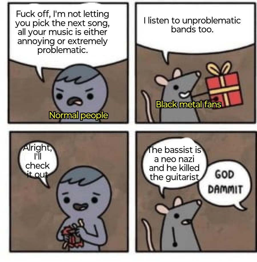 arrow-up1453arrow-down1imageThe least problematic early black metal bandlemmy.worldcasual say_gex_enjoyer@lemmy.world to Lemmy Shitpost@lemmy.world · 3 months agomessage-square47fedilink