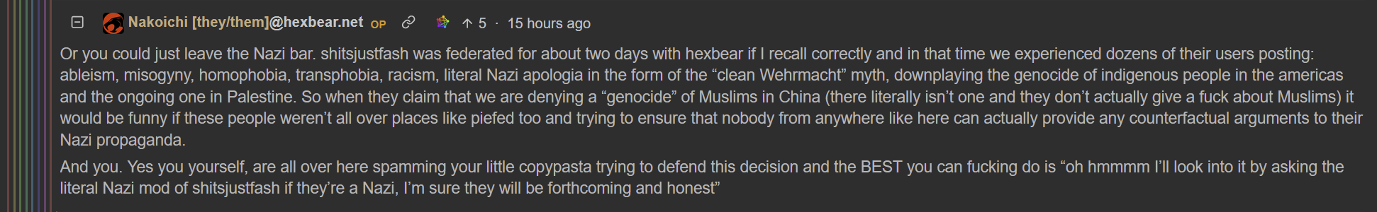 I appreciate the sentiment but please don’t pile on for my sake. Hexbear does that as well and I know it’s frustrating to be on the receiving side