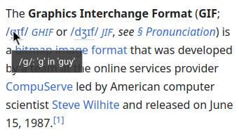 Aatube@lemmy.dbzer0.com to You Should Know@lemmy.worldEnglish · 2 months agoYSK When you hover over a piece of the phonetic notation on (English) Wikipedia, it shows you an example for its pronunciationsh.itjust.worksimagemessage-square63fedilinkarrow-up1409arrow-down113file-text
