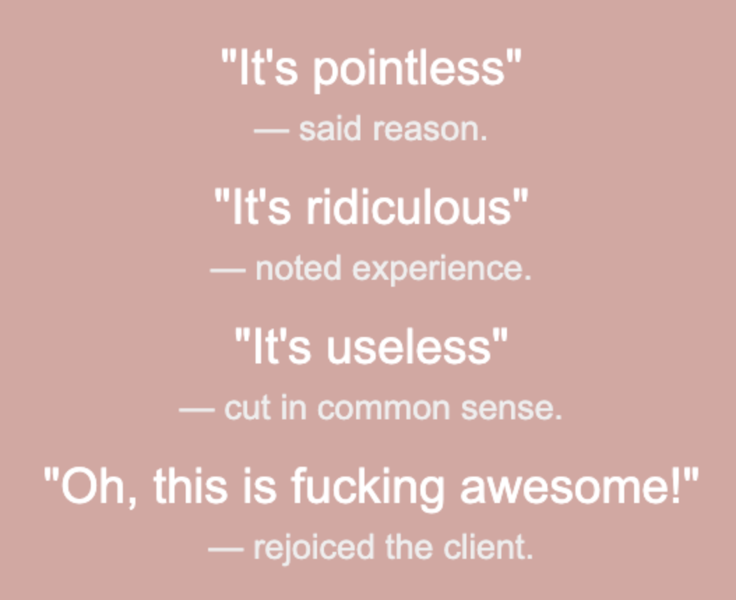 I love when the clients are always positive and excited even when you present them objective trash.