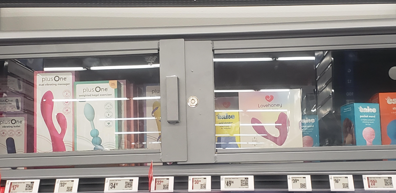 "We need a manager to unlock the vibrator and butt plug cabinet in aisle 12, thank you "