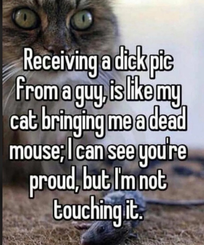 Okay, but at least cat cares about you and wants to meet your needs. What does an unsolicited dick pic do for anybody?