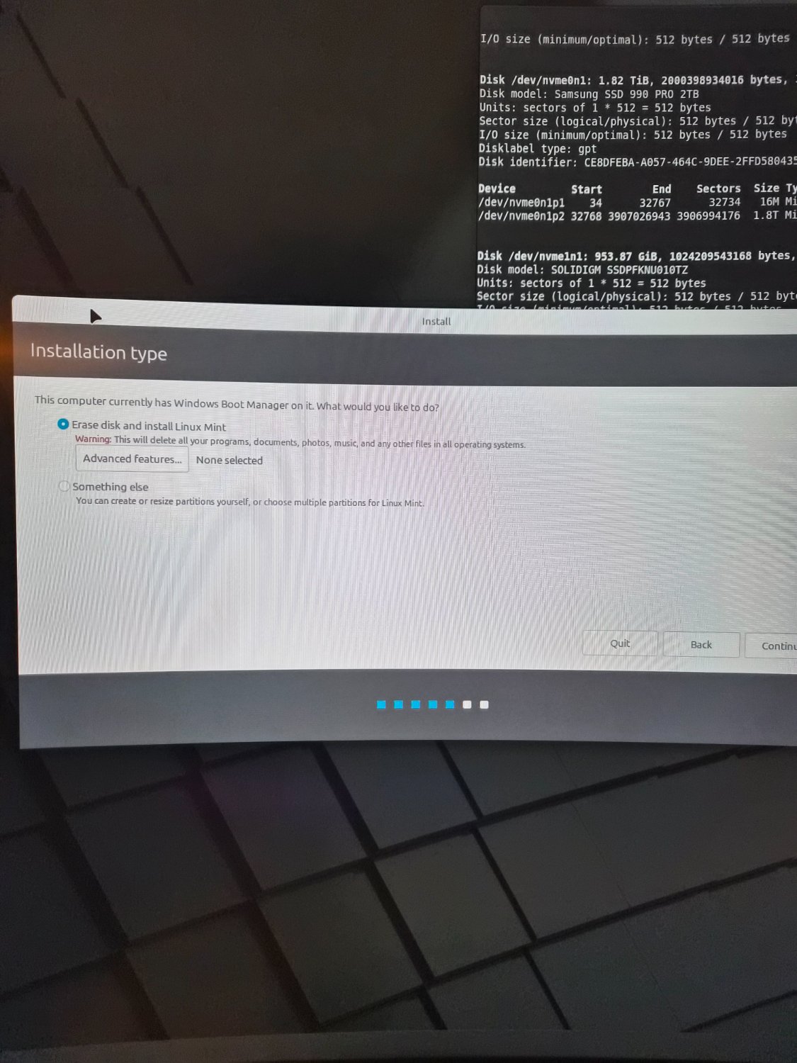 This is the second time I tried installing Mint on my PC. First time the installer stalled and went nowhere for 40 minutes, second time I’m missing the first option for dual booting. My trust in Linux isn’t the highest right now.