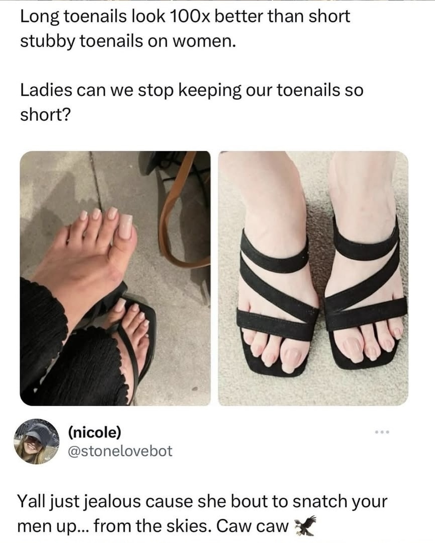 I will admit that the one on the left looks significantly better than the right but in all honesty they are both GROSS 🤢. Nothing wrong with short, clean nails.