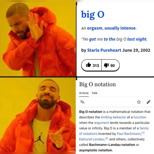fossilesque@mander.xyzM to Science Memes@mander.xyzEnglish · 7 days agoWhile you were having premarital sex, I was mastering the asymptotic notationmander.xyzimagemessage-square15fedilinkarrow-up1343arrow-down16