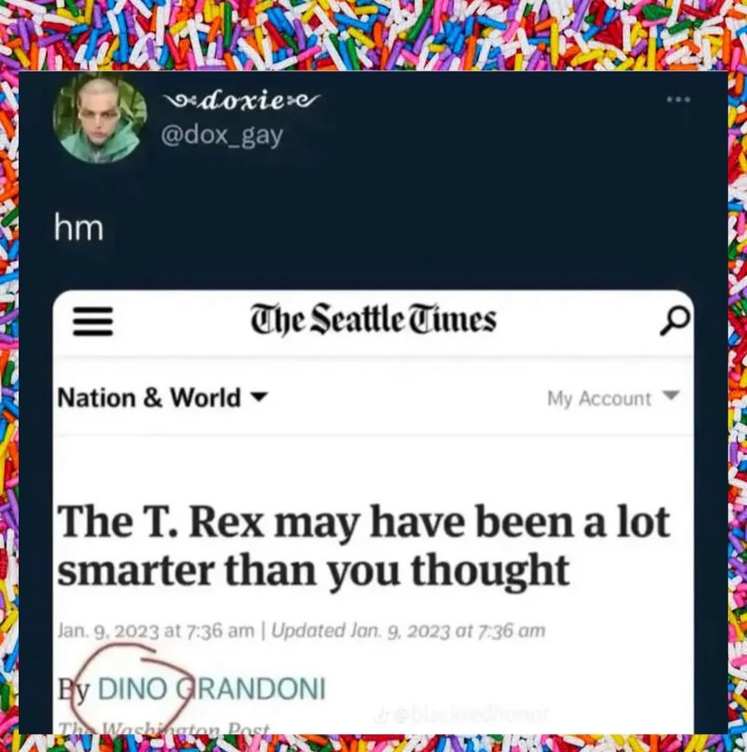 - Dino Grandino? No, that’s too obvious. Hmm. I know!