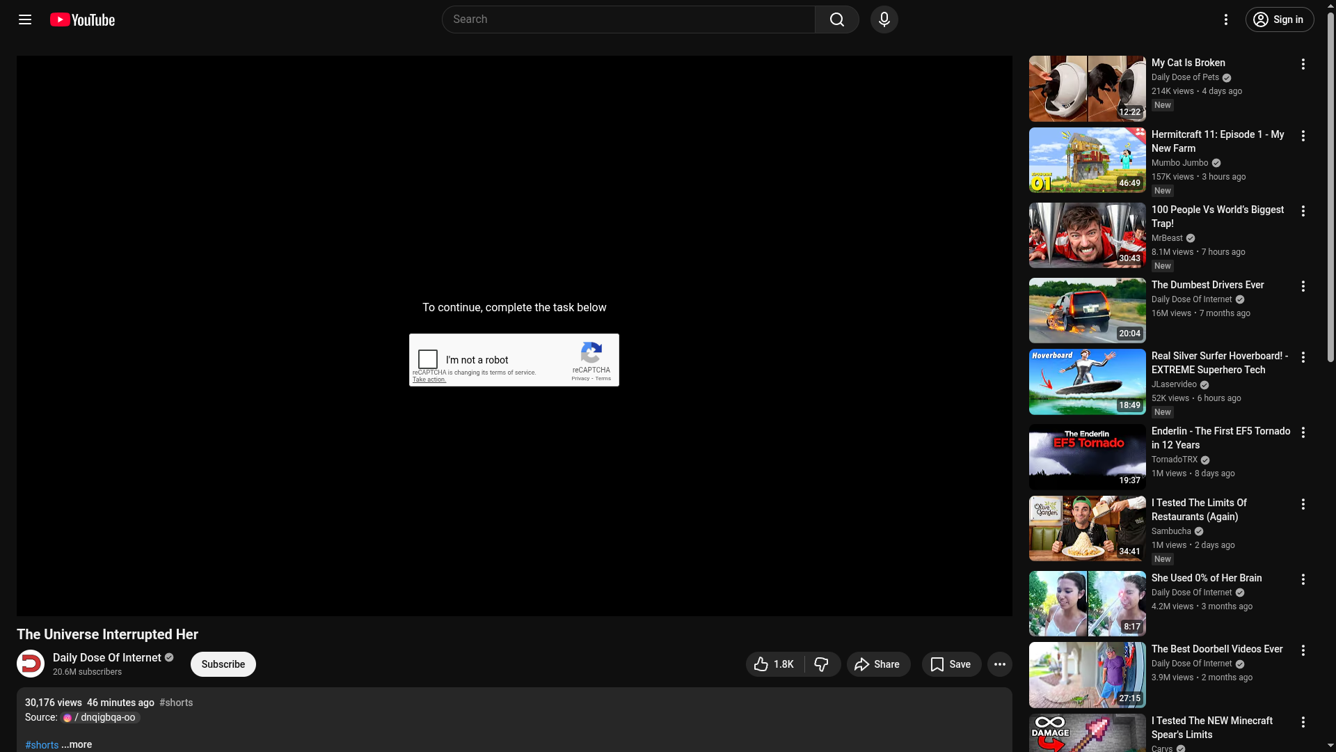 13 seconds of your life now costs you even more time to prove you’re not trying to scrape a video from a hundred billion dollar corporation with nearly infinite resources, advertisements and clickbait grabbing at your attention, every interaction logged and sold to thousands of data brokers, and you can’t even show your appreciation without selling more information by creating an account. How did we get here?