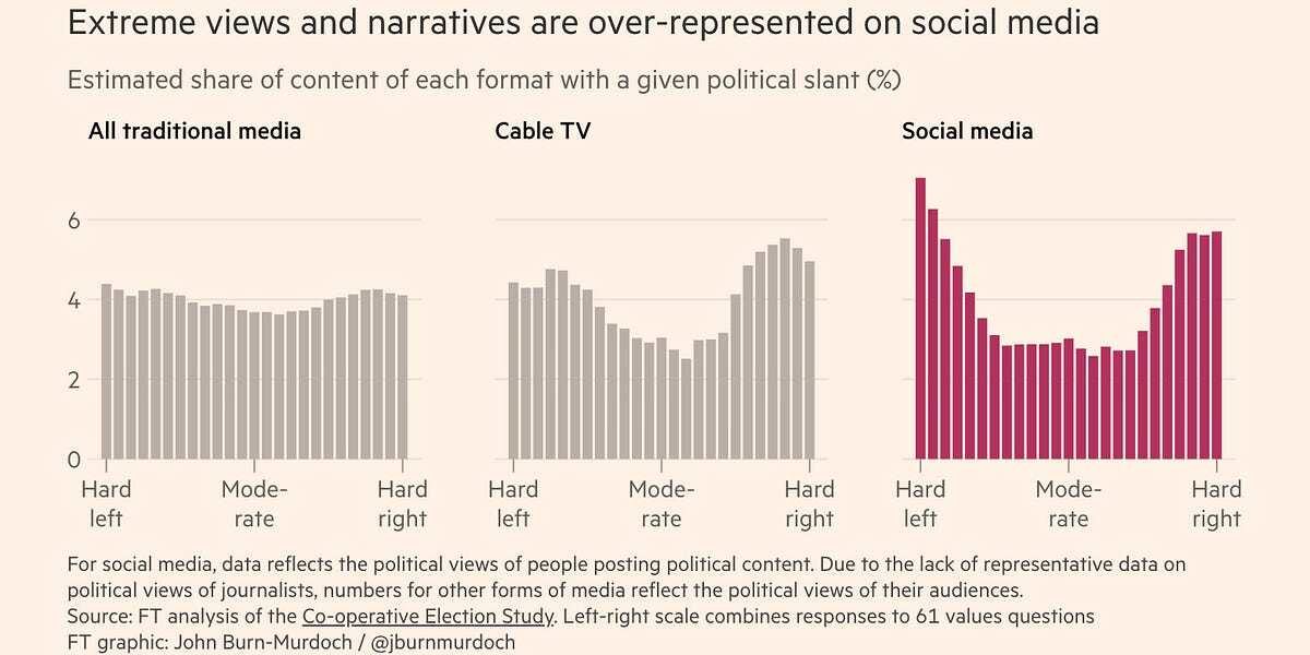 Yeah, most of what the article complains about is algorithmic social media and how it boosts engagement of any kind, whether positive or negative. This leads to “extremist” takes gaining ground easier then moderate takes. Combined with algorithmic siloing, echo chambers etc. That we’ve heard a million times, make people more radical and disconnected from reality.