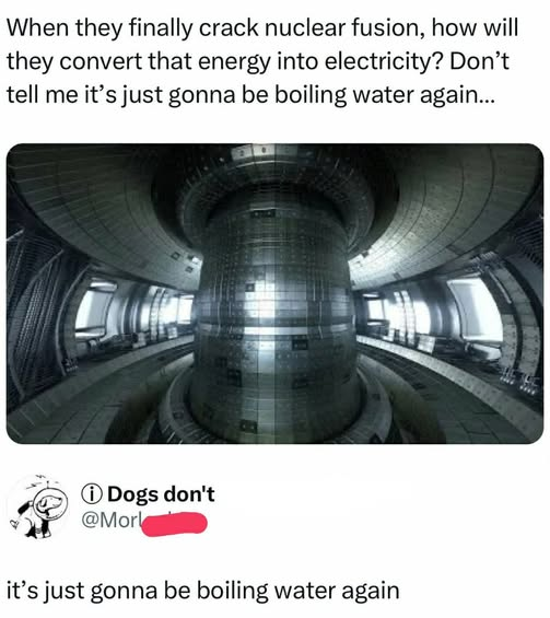 I would swear I saw Tom Scott interview one lab that was planning on building a fusion generator that worked like a diesel engine. Like, the fusion reaction drives a piston.