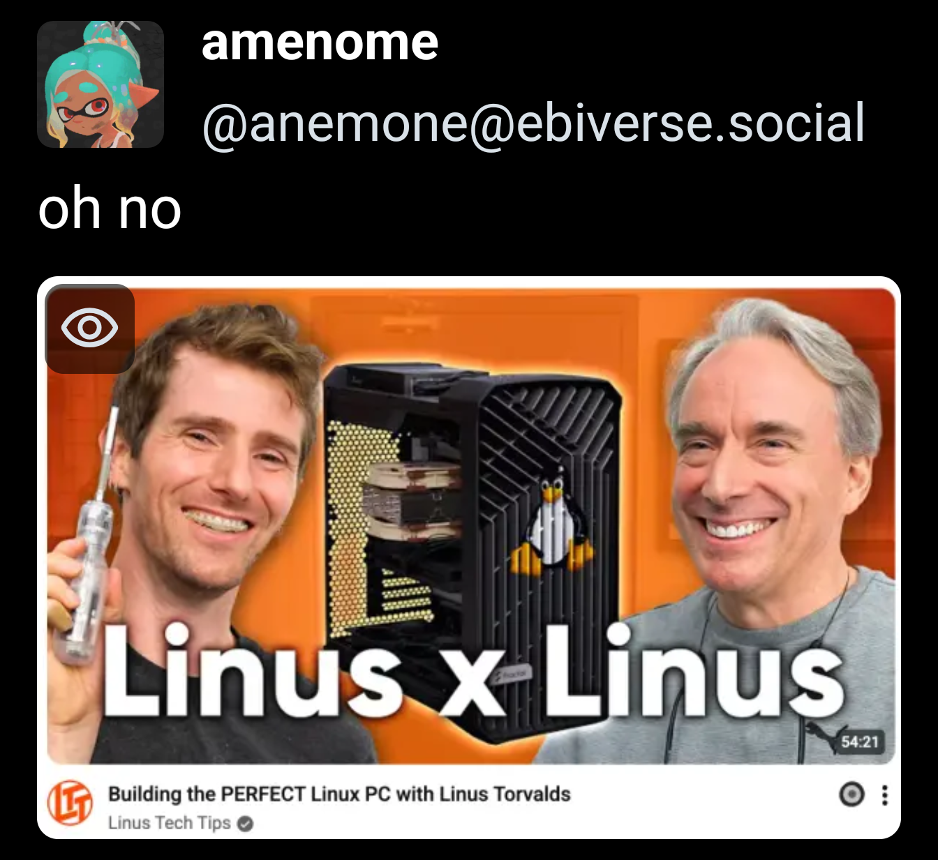 Fresh hell, my Sharkey instance doesn’t federate with ebiverse.social so I can’t react on my account 🥺😭