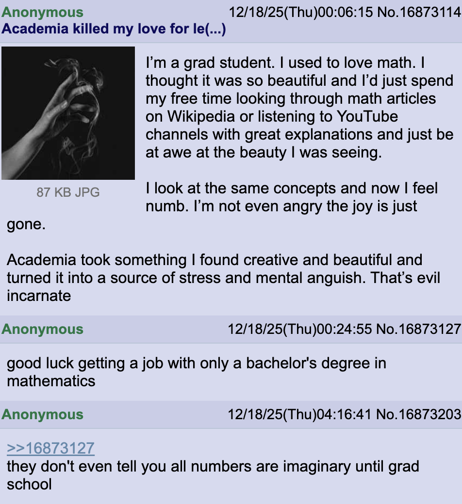 Fair lol. IMO you kinda gotta be fucked in the head to like calculus. But I am fucked in the head, so it works for me 🤷