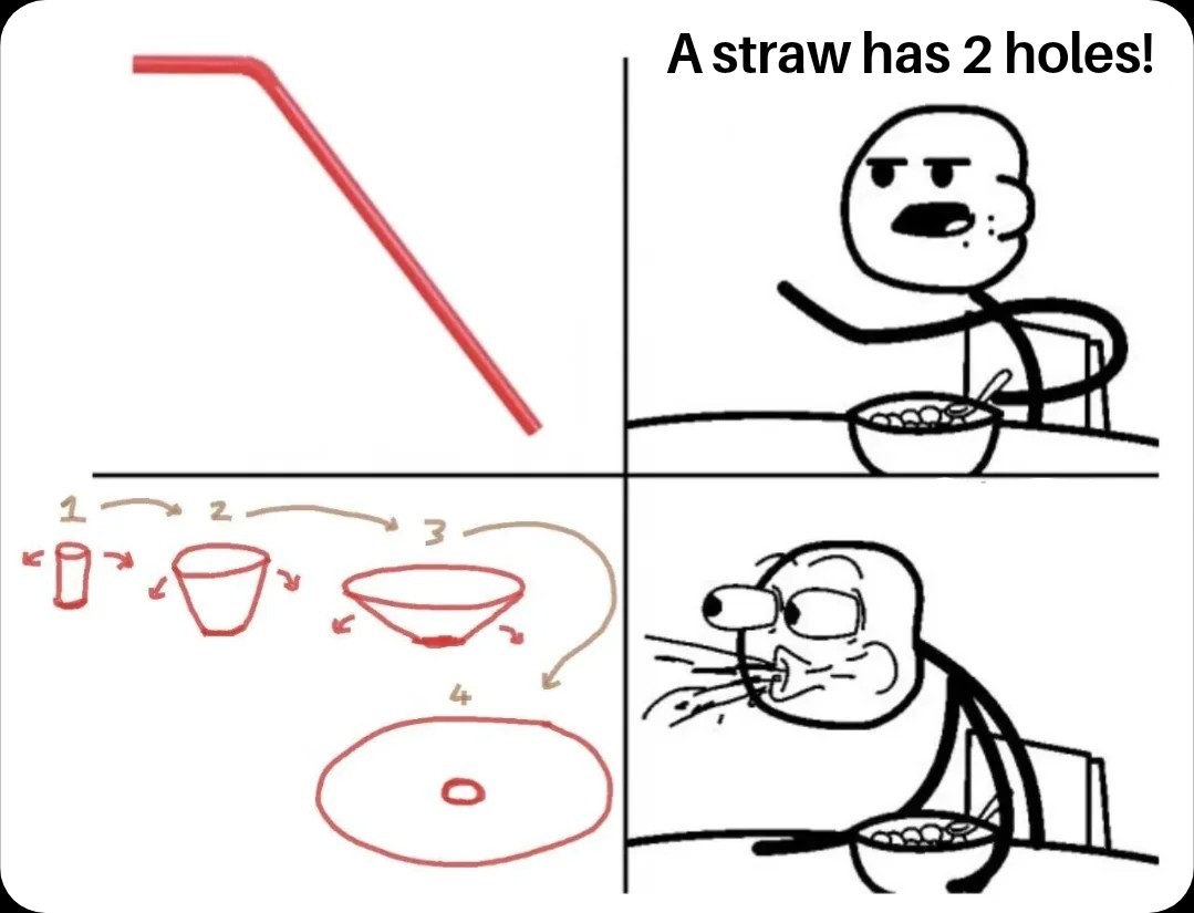 So, I kinda just woke up from a nap and my still confused mind thought the meme said the straw had four holes.