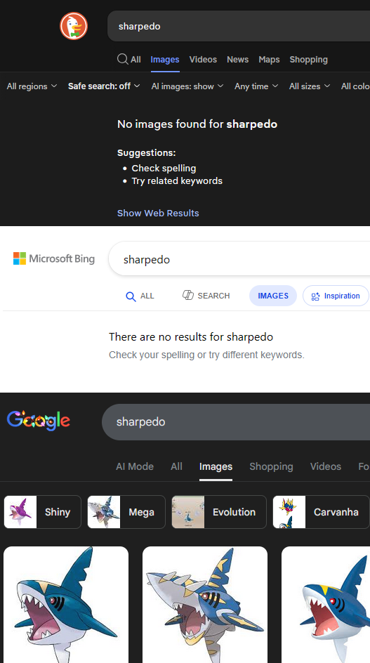 I thought it was maybe due to the suffix being problematic, but “torpedo” shows up without issue. Tried with safe search on/moderate and off.