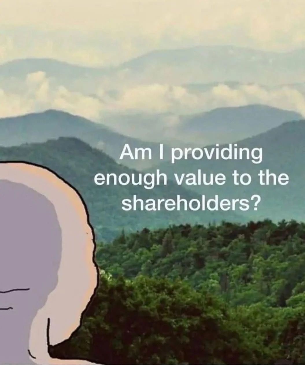 Whilest I don’t work for an openly traded company, I DO work for a non profit that’s in like 3 billionaires back pockets…so…what ya gonna do…
