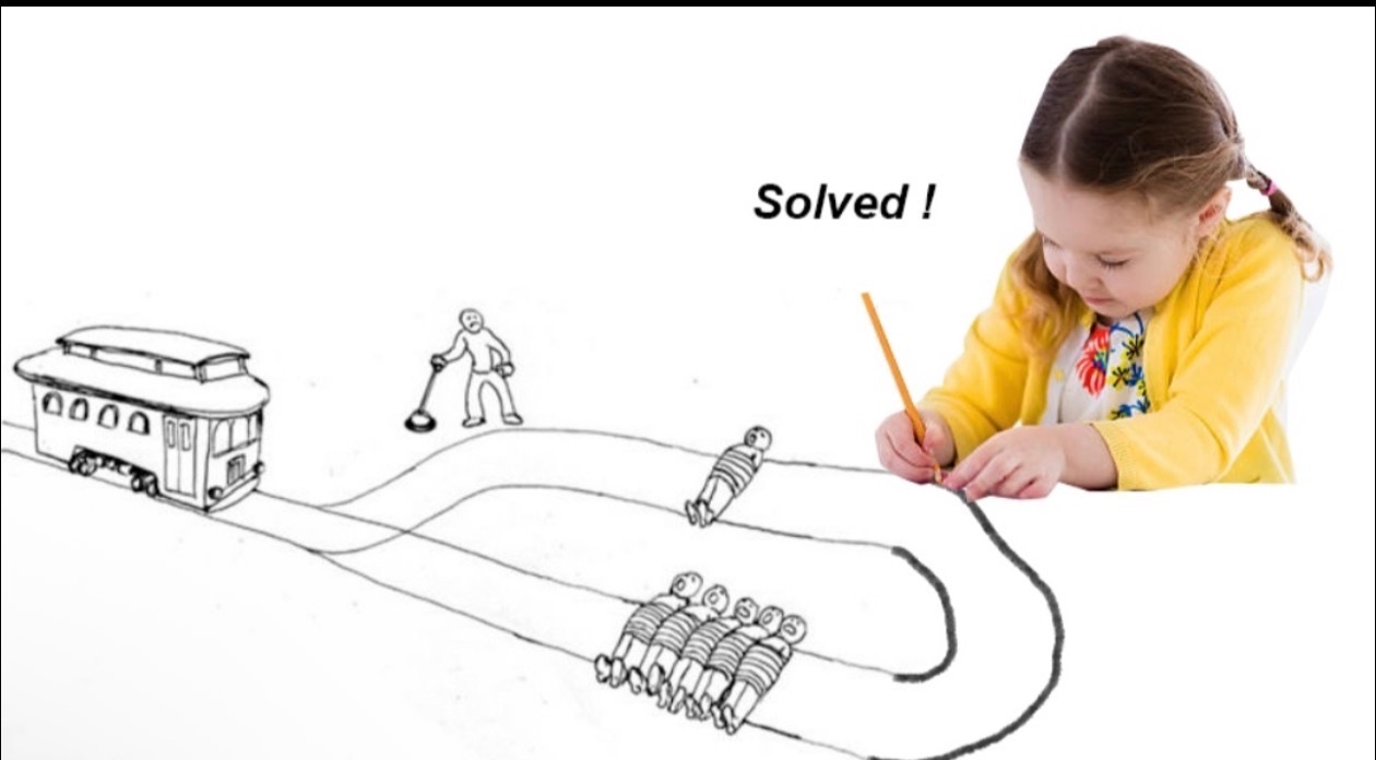 that return radius is too small. all it will do is roll the trolley off the tracks and leave the lever operator and the one one the tracks unscathed.