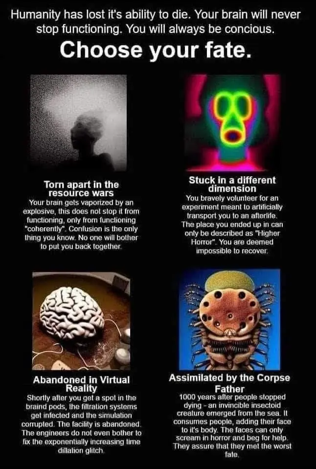 VR seems the most like death, and if you’re on hardware and have infinite time you can probably eventually find a security exploit for root access, at which point you can build your chosen reality