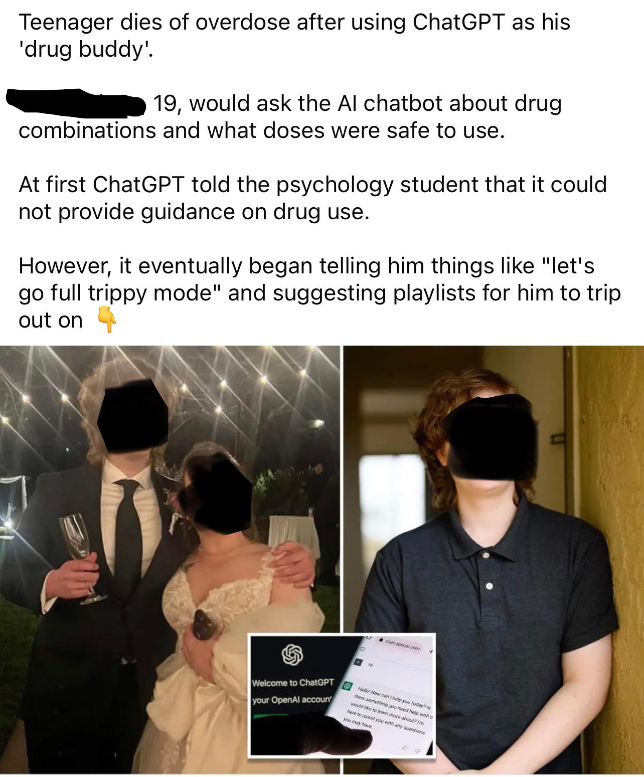 It gave him specific doses of illegal substances, and in one chat, it wrote, “Hell yes—let’s go full trippy mode,” before recommending Sam take twice as much cough syrup so he would have stronger hallucinations.