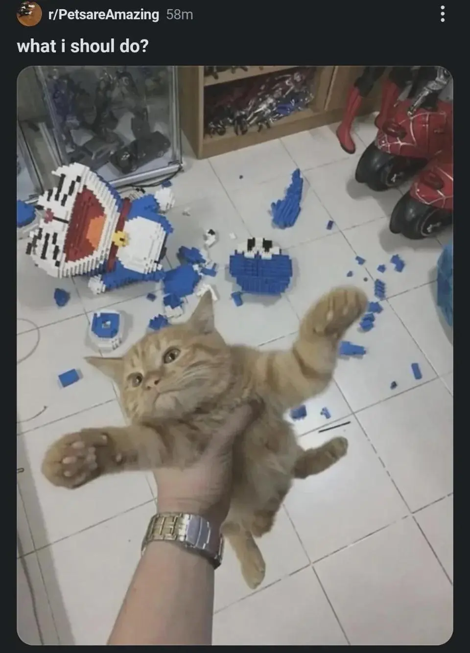 I’ve been trying to assemble that cat LEGO in my head but can’t figure where Cookie Monster’s head might go?