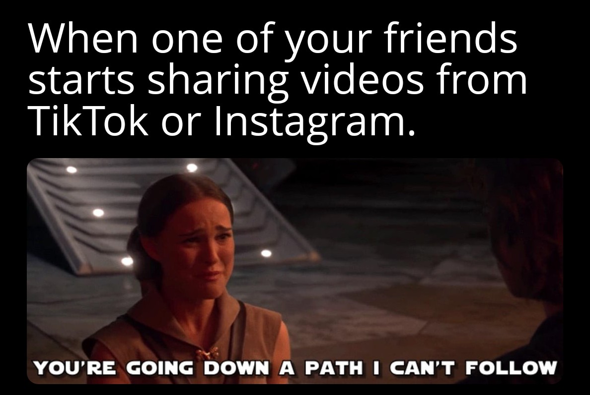 minus-squareArmand1@lemmy.worldlinkfedilinkarrow-up55·edit-222 hours agoMy friends keep telling me to get Instagram so they can send me memes. No, thanks.