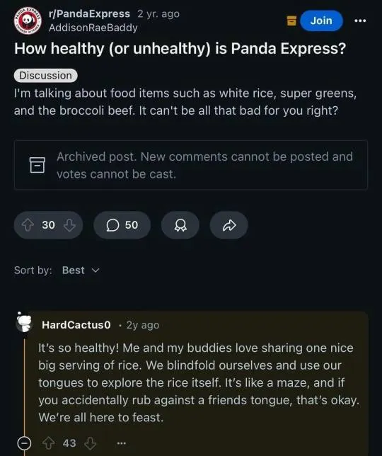minus-squareSundray@lemmus.orglinkfedilinkEnglisharrow-up15·3 days agoThis sounds unappealing, what with all that nasty rice getting in the way of our tongues and all.