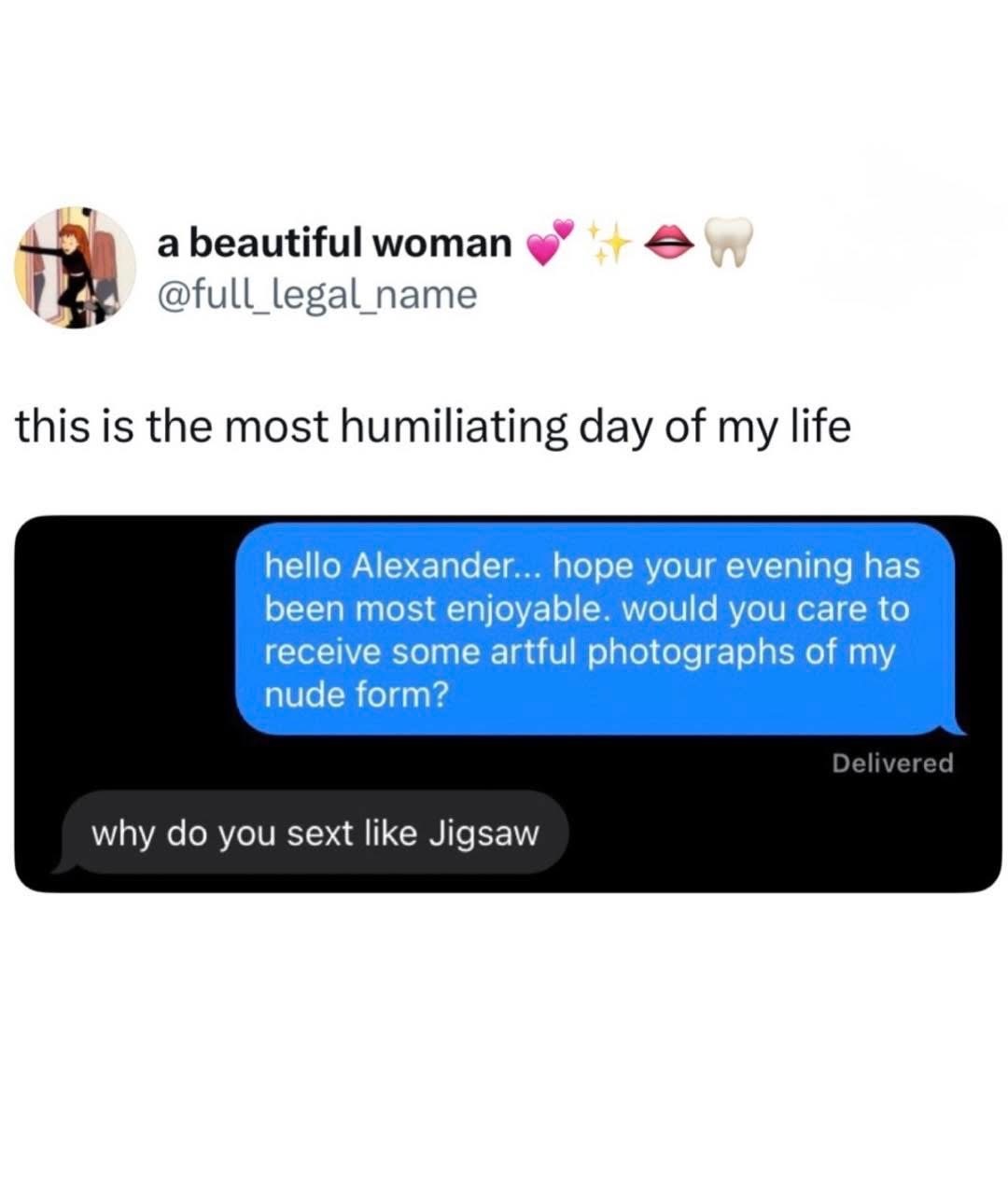 I want to see someone try this, get some steamy ankle pics in reply, and then hit it off since they’re on the same (ridiculous) wavelength.