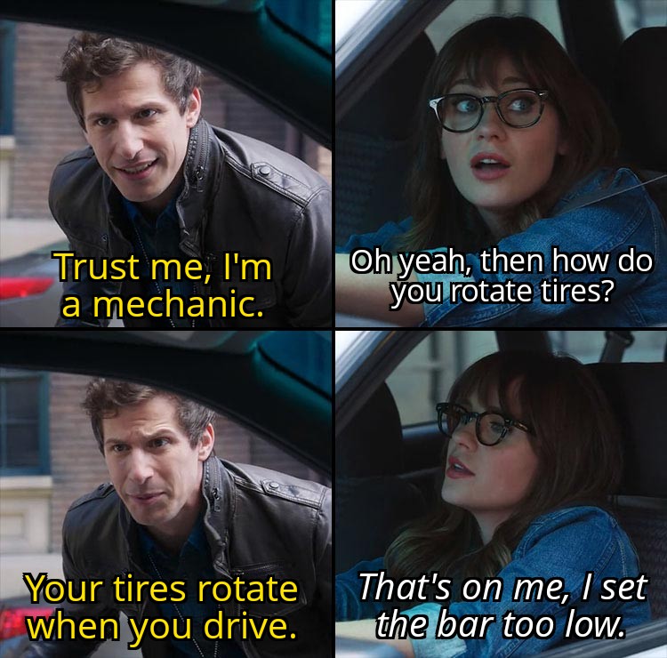 Still never a bad idea, but also means you can only rotate tires at tire shops.