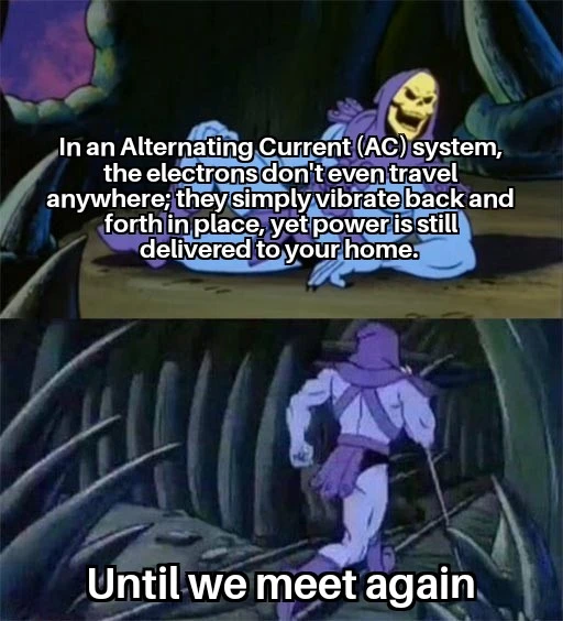 Ad on a DC system, the electrons move dozens of times slower than a person walking. They also don’t get anywhere, and power is still delivered.