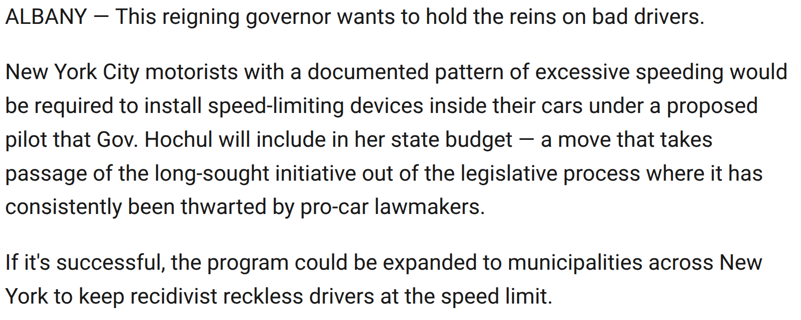 This is why the governor’s policy will work well. It let’s drivers stay on the road until they’ve been caught with many infractions. It’s a very different story when you take someone’s license away after a few speeding tickets versus taking their license away after a few speeding tickets, then several months of well-documented continued speeding incidents every time they drove. Losing your license has serious consequences in modern society, but my sympathy for dangerous drivers has a limit.