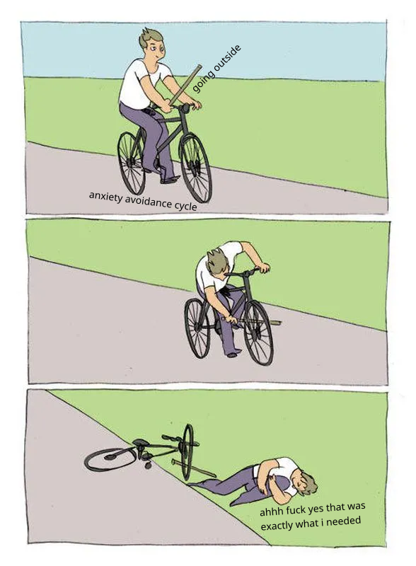 Like seriously, when you’re in a situation like mine, what the fuck is going outside even for other than being reminded that you live in fucking hell?