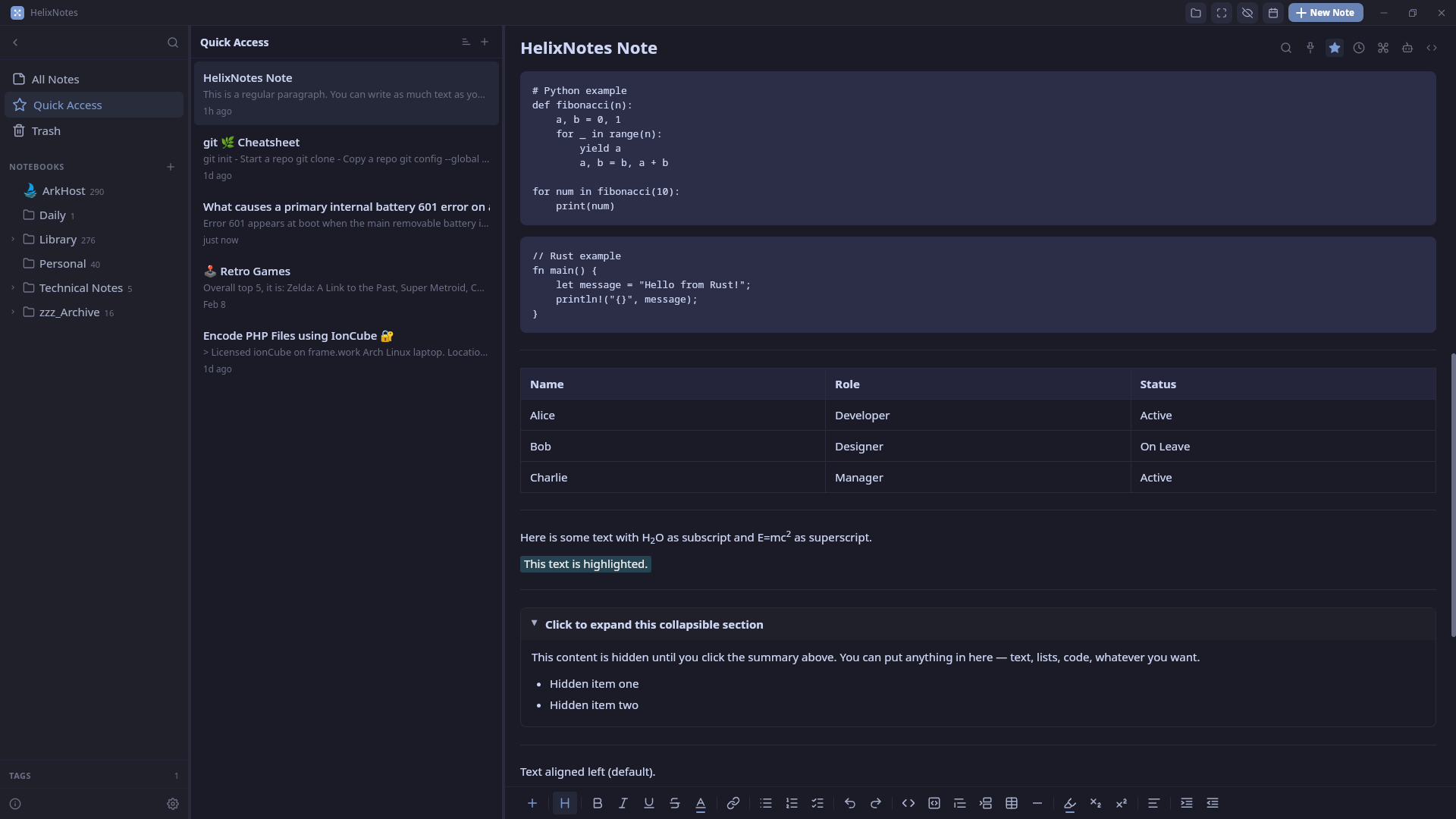 Available for Linux (AppImage, APT, AUR), Windows, and macOS. Source: https://codeberg.org/ArkHost/HelixNotes