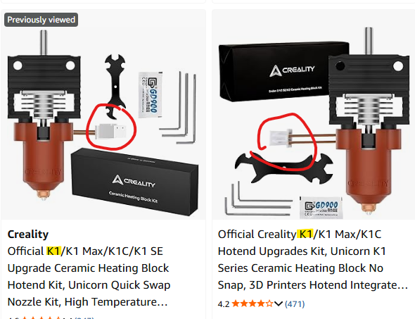 I’ve added an image for help explaining the problem. These two JST connections are completely different, but both are supposed to be for the K1. And both of these listings are Creality Official: