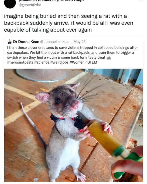 fossilesque@mander.xyzM to Science Memes@mander.xyzEnglish · 5 hours agobetween medicine and this, we do not honour rats enoughmander.xyzimagemessage-square21fedilinkarrow-up1425arrow-down10