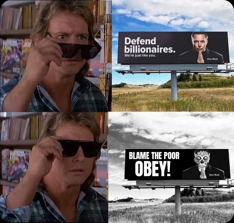 minus-squareRuBisCO@slrpnk.netlinkfedilinkarrow-up3·9 days agohttps://archive.org/details/they-live-1989-vhs Starts at ~2:20