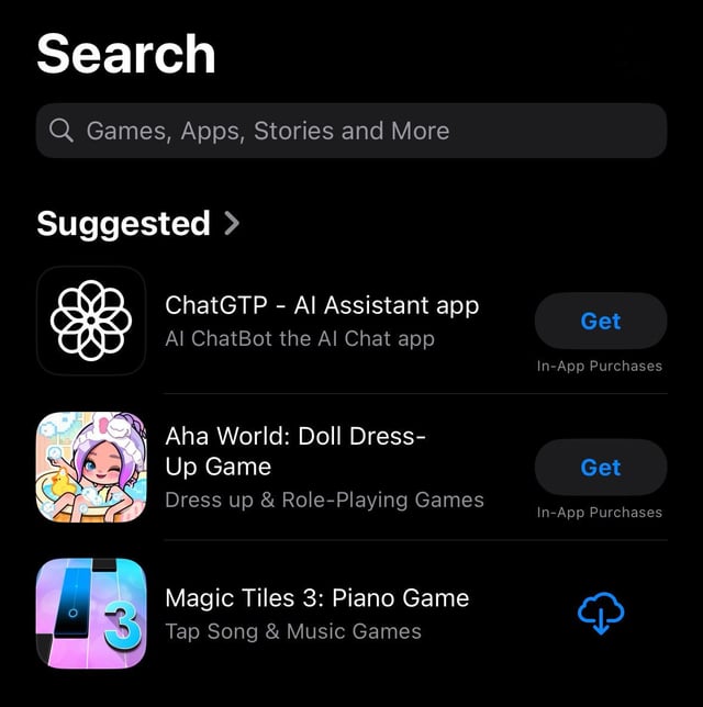 tfm@europe.pub to AssholeDesign@lemmy.worldEnglish · 9 months agoApple App Store suggests ChatGPT Chinese malware clone front and centereurope.pubimagemessage-square20fedilinkarrow-up1256arrow-down15file-text